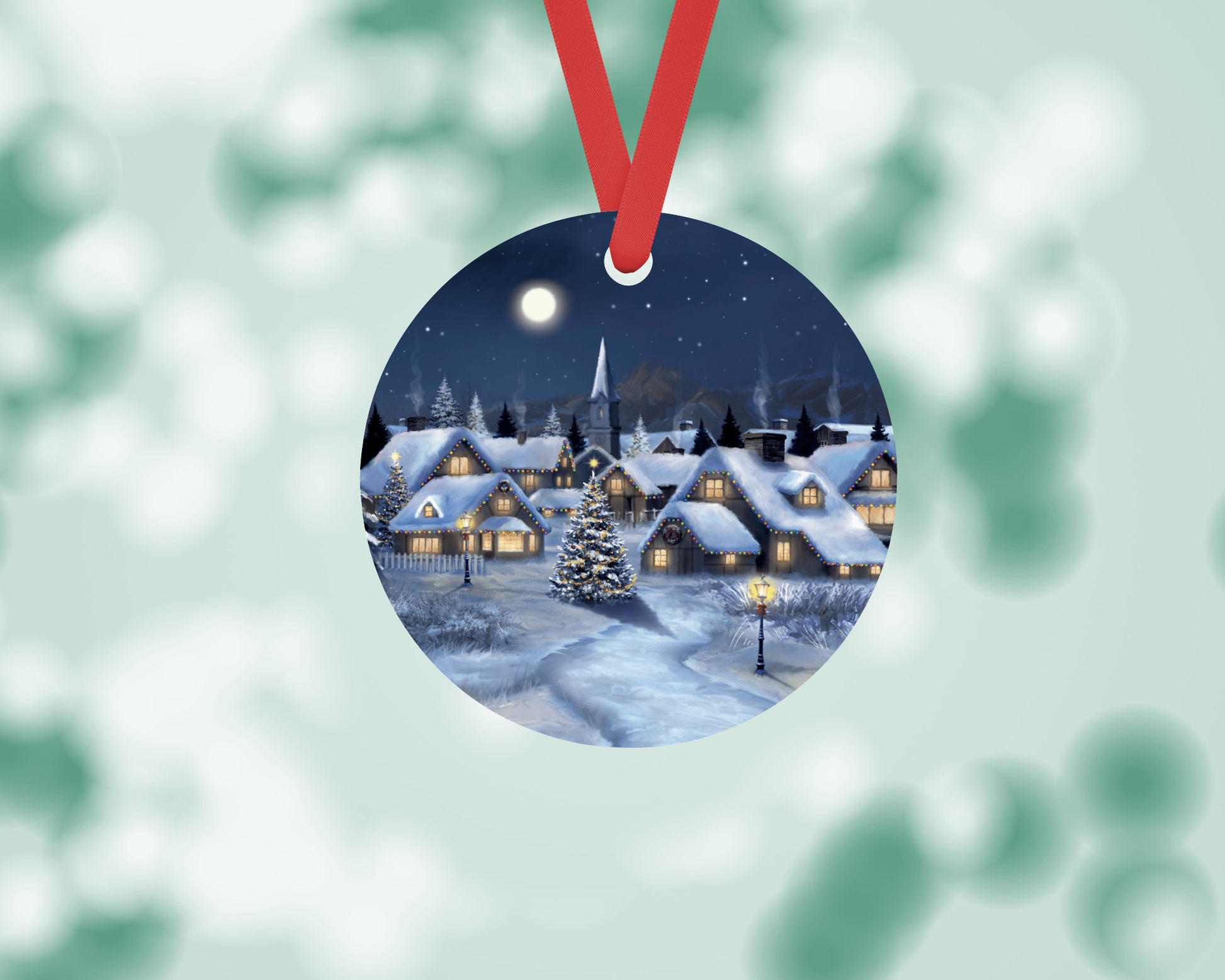 Christmas Village at Midnight Ceramic Christmas Ornament with Art by Simon Treadwell